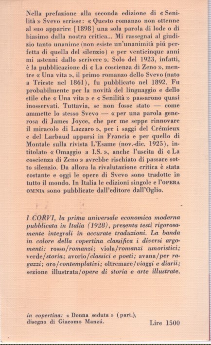 A trentacinque anni Emilio Brentani vive un’esistenza grigia accanto alla sorella Amalia, una donna semplice e buona, ma non più giovane né bella finché incontra Angiolina una vitale e “facile” popolana con cui intreccia una relazione. Emilio attribuisce a questo rapporto un significato che l’indole morale della ragazza non sa sostenere. L’amico Balli viene coinvolto nella vicenda e Angiolina ne diventa l’amante. Amalia se ne innamora nascostamente; quando il suo sentimento viene scoperto, sentendosi frustrata e derisa si stordisce con l’etere e ne muore. Emilio, completamente vinto dalle vicende, rinuncia a sentirsi vivo e sceglie “la senilità”, rinunciando così anche alle emozioni e ai sentimenti.