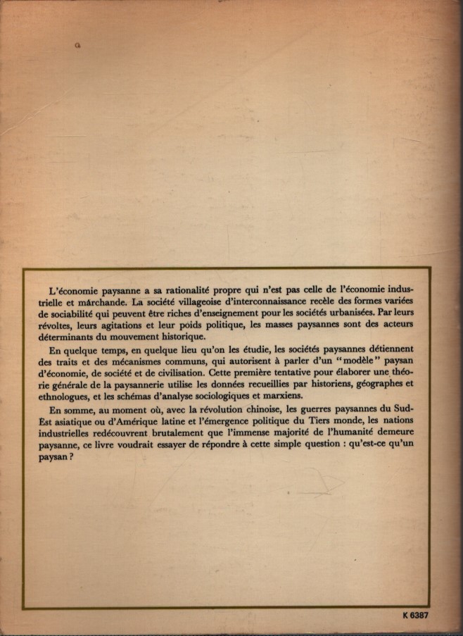 Nell’Europa orientale, i regimi comunisti costituivano straordinari bastioni della vita contadina. Nel resto del mondo, la popolazione contadina è più numerosa che mai. È raddoppiata in Cina, Indonesia e nei paesi con una popolazione più piccola. Nell’Europa occidentale, meno di mezzo secolo è stato sufficiente per distruggere società contadine millenarie. La civiltà contadina non esiste più. Eppure, qui come altrove, la classe contadina rimane di fondamentale importanza: è presente nell’ideologia, nella visione del mondo e nei valori anche degli occidentali più urbanizzati; le sue strutture rurali erano la matrice delle istituzioni politiche e sociali delle nazioni. Ciò sottolinea quanto sia essenziale comprendere la civiltà contadina per comprendere il mondo contemporaneo.