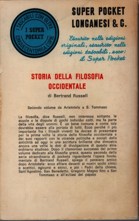 STORIA DELLA FILOSOFIA OCCIDENTALE . DA ARISTOTELE A S. TOMMASO . SECONDO VOLUME. N° 71
