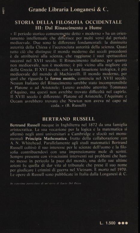 STORIA DELLA FILOSOFIA OCCIDENTALE . DAL RINASCIMENTO A HUME . VOLUME III . N° 11