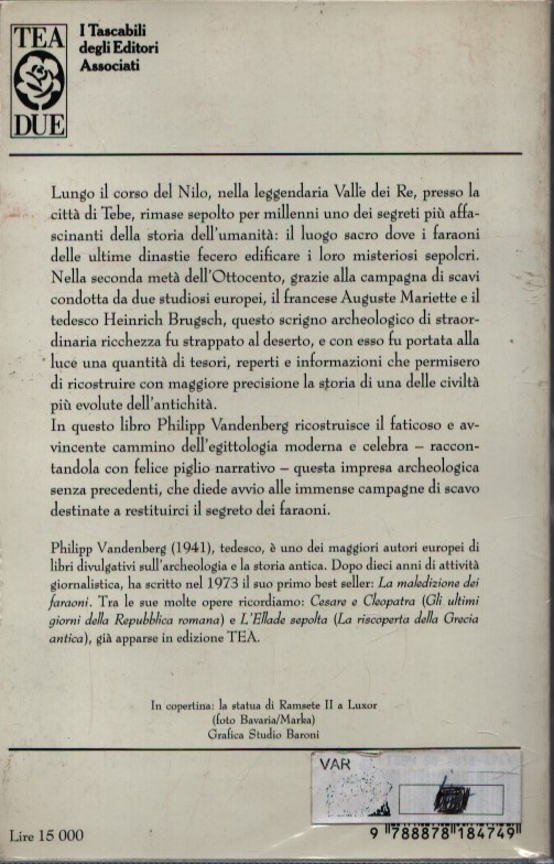 Mentre pascià e vicerè davano feste pompose e migliaia di fellah lavoravano alla costruzione del canale di Suez, un pugno di avventurieri e studiosi cercavano, sotto il sole bruciante del deserto, i segreti dell’antico Egitto nella leggendaria valle dei re. La Valle racconta l’avventurosa storia di questi uomini e di due in particolare: un francese intraprendente e deciso, Auguste Mariette e un tedesco sensibile, timido e coltissimo, Heinrich Brugsch. Avevano lo stesso obiettivo, riscoprire la civiltà dimenticata.