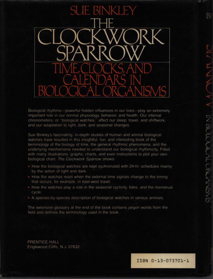 Gli affascinanti e approfonditi studi di Binkley sugli orologi biologici umani e animali hanno dato vita a questo illuminante libro che tratta la terminologia della biologia del tempo, i fenomeni ritmici generali e i meccanismi sottostanti necessari per comprendere la nostra ritmicità biologica.