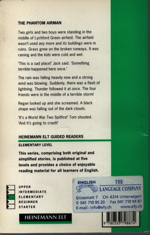 Due ragazze e due ragazzi erano in piedi nel mezzo dell’aeroporto di Lychford Green. L’aeroporto non era più utilizzato e i suoi edifici erano in rovina. L’erba cresceva sulle piste rotte. Pioveva e i bambini erano infreddoliti e bagnati. “Questo è un posto triste!” disse Jack. “Una volta qui è successo qualcosa di terribile.” Ora la pioggia cadeva forte e soffiava un vento forte. Improvvisamente, ci fu un lampo. Subito dopo, un tuono. I quattro amici si trovavano nel mezzo di una terribile tempesta! Regan alzò lo sguardo e urlò. Una sagoma nera stava cadendo dalle nuvole scure. “È uno Spitfire della Seconda Guerra Mondiale!” urlò Tom. “E sta per schiantarsi!”