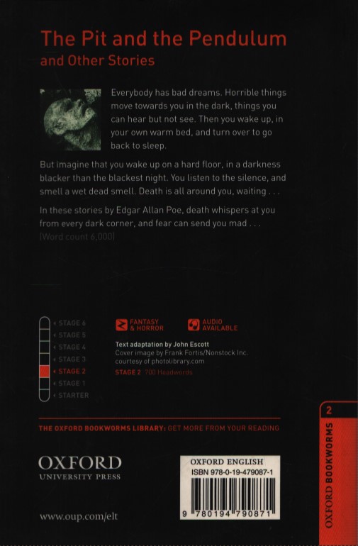 Tutti fanno brutti sogni. Cose orribili si muovono verso di te nell’oscurità, cose che puoi sentire ma non vedere. Poi ti svegli, nel tuo letto caldo, e ti giri per riaddormentarti. Ma immagina di svegliarti su un pavimento duro, in un’oscurità più nera della notte più buia. Ascolti il silenzio e senti un odore di umido e di morte. La morte è tutt’intorno a te, in agguato… In questi racconti di Edgar Allan Poe, la morte ti sussurra da ogni angolo buio e la paura può farti impazzire.