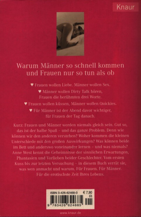 Perché gli uomini vengono così in fretta e le donne fingono solo: le donne vogliono amore. Gli uomini vogliono sesso. Gli uomini vogliono sentire discorsi piccanti, le donne le famose tre parole. Per gli uomini, la notte prima è più importante, per le donne, il giorno dopo. In breve: donne e uomini non saranno mai più gli stessi. Meno male, è metà del divertimento – e l’intero problema. Perché come possiamo capirci? Da dove vengono le piccole differenze con le grandi conseguenze? Cosa possono fare entrambi a letto e altrove?…