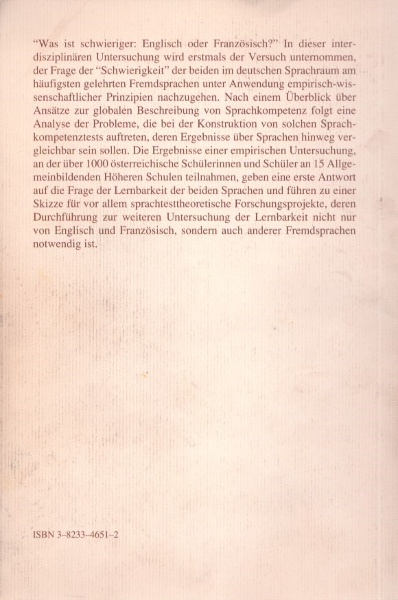 ZUR LERNBARKEIT VON ENGLISCH UND FRANZÖSISCH FÜR DEUTSCHE MUTTERSPRACHLER . EINE EXPLORATORISCHE PILOTSTUDIE